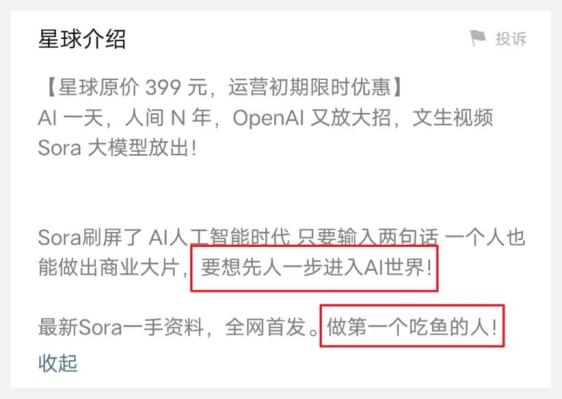 但一个李一舟倒下,还有无数用Sora割韭菜的人起来。消费者服务平台“黑猫投诉”显示,目前与AI课程有关的投诉接近3000条,投诉理由大多是虚假宣传,课程质量低下。