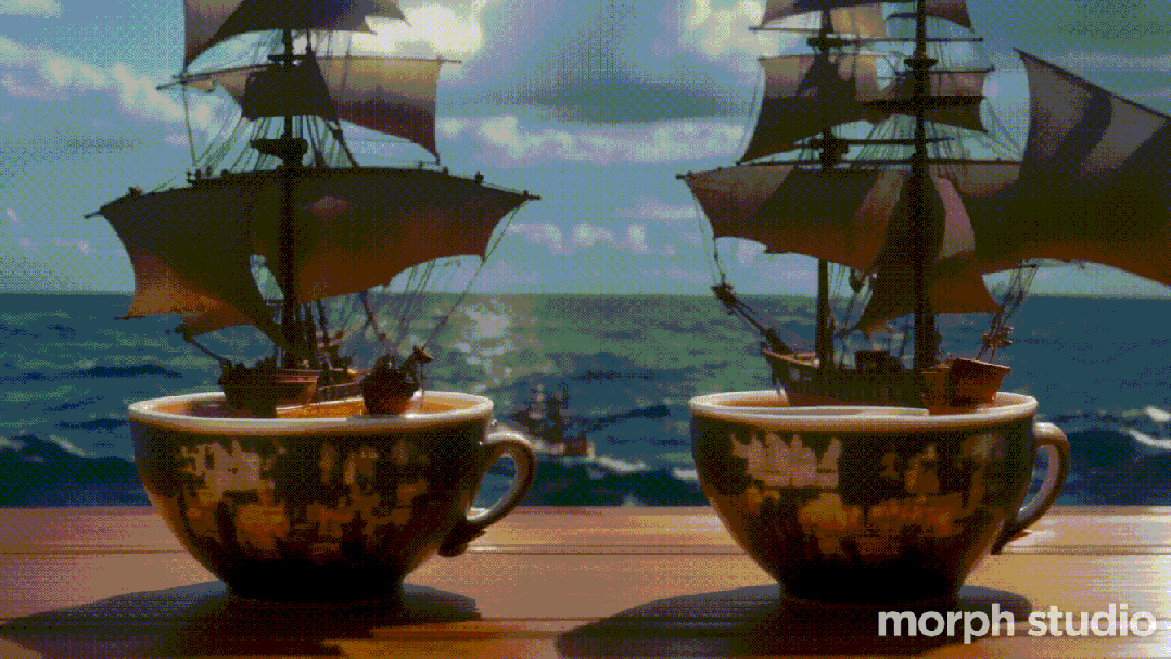 Morph Studio则将两艘海盗船放进了两个咖啡杯,还自作主张地添加了海洋背景。
