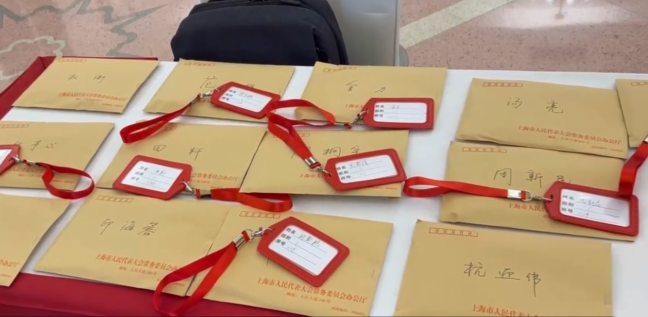 在沪全国人大代表领取的证件和材料。 澎湃新闻记者 李佳蔚 图