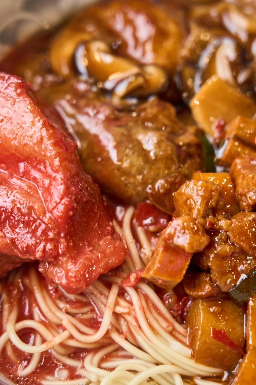 虹口区的古早烟火气、开了18年的“本帮浇头面”,去年开到长寿路附近了。原本1天只做3小时,在客人强烈要求下“被迫”增加了营业时间。老客人一般闭眼点三浇面:1大荤、1小荤、1素,浇头每天现做,20+种选择。私心最爱腐乳肉,整块肉被腐乳包裹,肥瘦均衡且入味三分,难怪熟客每次都点!