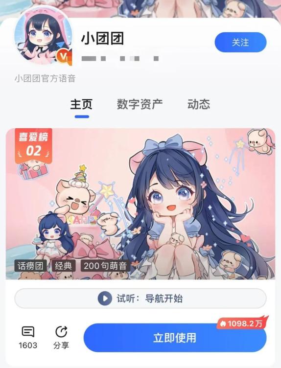 2020年9月11日,小团团导航语音正式上架高德地图,也成为高德地图最年轻的导航员,用户量超千万,是最受欢迎的导航语音包之一。