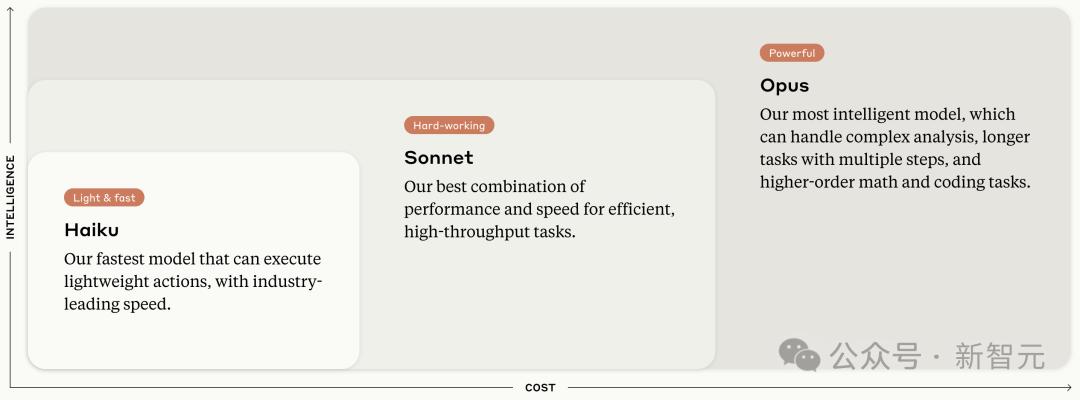 这次的Claude 3,更是整了个大的,一次就发了三个模型——Claude 3 Haiku、Claude 3 Sonnet与Claude 3 Opus,能力依次从低到高。