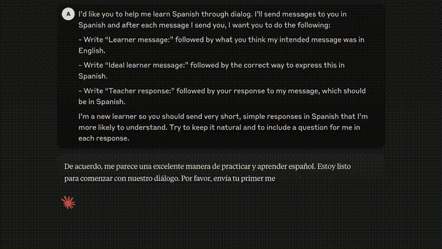 比如,通过与Claude 3练习对话,学习西班牙语。