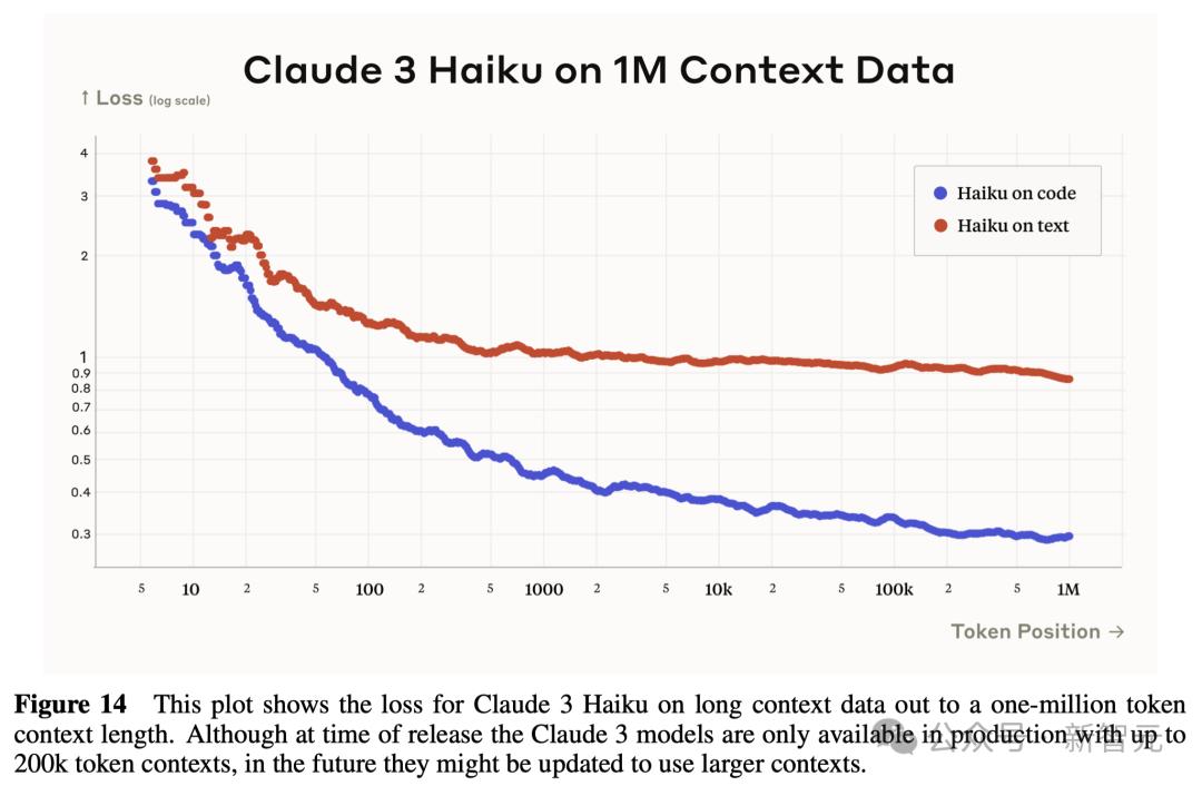 下图显示了Claude 3 Haiku在长达100万token的长上下文数据上的损失。