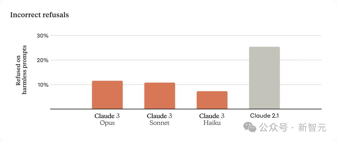 之前的Claude模型经常因为理解不到位,而不必要地拒绝回答。而这一次的Claude 3系列,已经在这方面取得了显著改进。