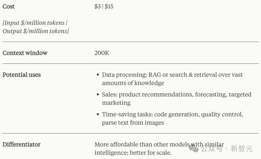 与其他具有相似智能水平的模型相比,Claude 3 Sonnet更加经济实惠,特别适合需要大规模部署的场景。