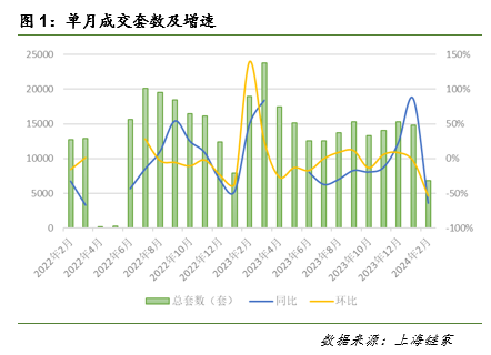 综合今年前2个月的数据来看,上海全市二手房累计成交金额758亿元,同比下降14%,成交套数2.16万套,同比下降20%,套均总价351万元/套,同比增长8%,成交均价41253元/平方米,同比增长4%。上海链家研究院首席分析师杨雨蕾认为,2月份受春节假日影响,成交0.68万套,同环比下降,但是相较去年春节月的成交,仅下降10%左右,说明在节前各项利好政策的支持下,今年节后成交恢复较好。