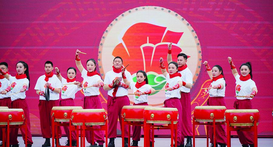 鼓舞《奔向未来》由广州市少年宫、广州市团校、广州市青年文化宫联袂表演 陈天旭/摄