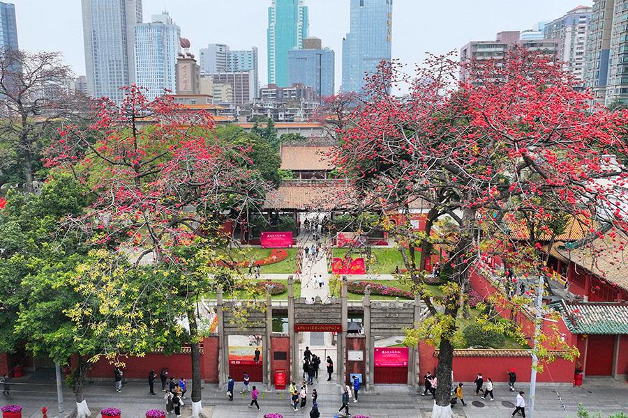 永庆坊的红棉树,昂扬向上,使粤剧博览馆更显南粤风韵 吴启光/摄