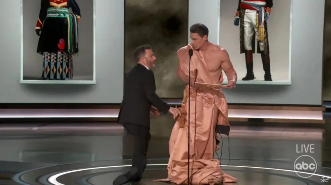 约翰·塞纳在颁布最佳服装设计奖项时裸体登场,仅用得奖名单遮住关键部位,最终工作人员给他围上一条布才得以完成颁奖仪式……