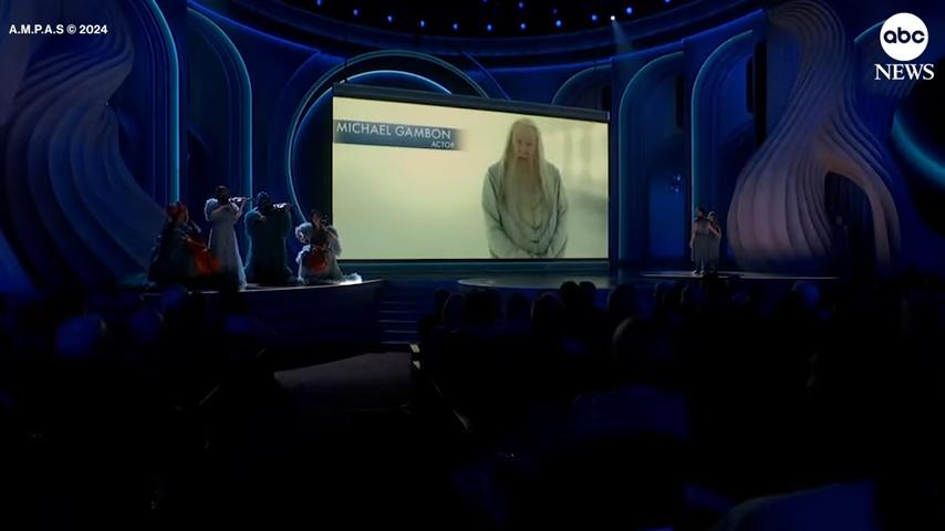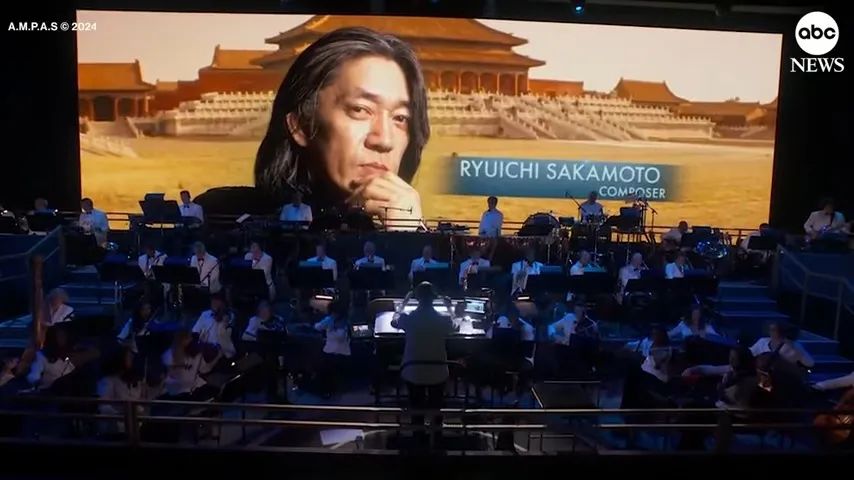 △ 右边是奥斯卡颁奖礼上缅怀的迈克尔·甘本,左边则是伊恩·麦凯莱恩还有,坂本龙一。