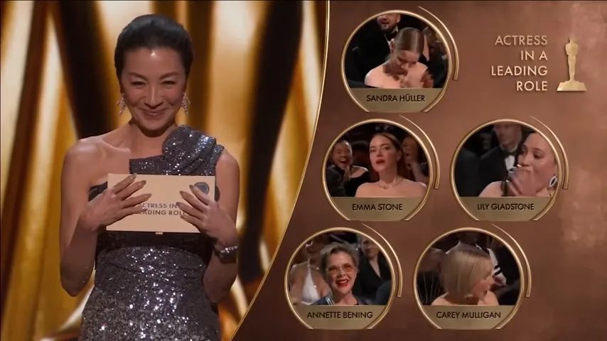 今年的最佳女主角奖项由五位曾获得该奖的女星颁发,首位亚裔奥斯卡最佳女主角得主杨紫琼也在其中。