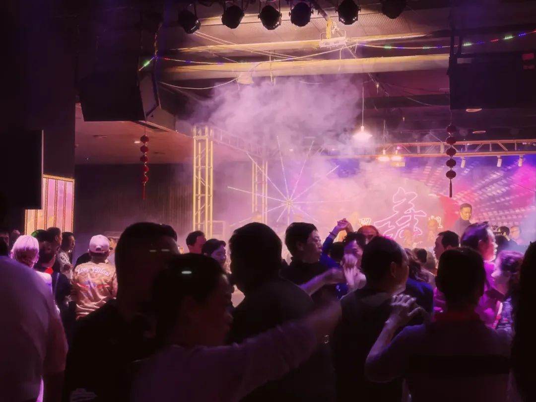 “你我只是这茫茫人海中,不知天高地厚的那一棵草,所以不用烦恼,开心就好”,蹦迪版的抖音神曲《海草舞》响起,有人甩动红旗疯狂旋转。人群嗨了,自动围圈跳起来。还不够尽兴,紧跟着一首《冬天里的一把火》。