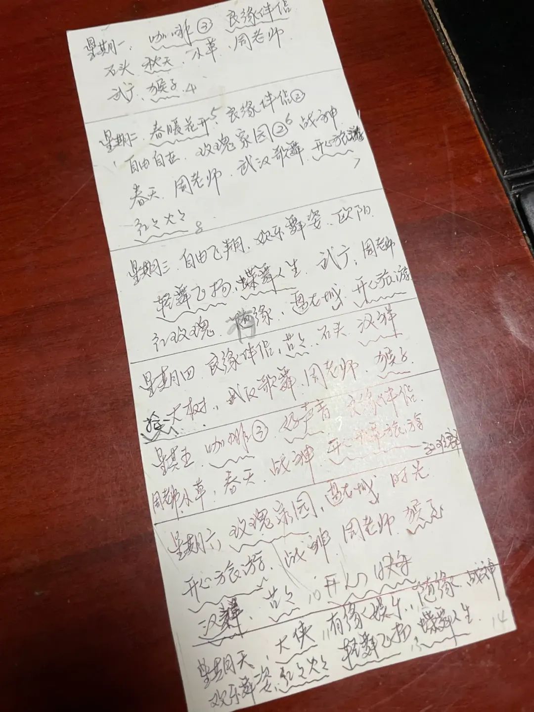 ●四姐手写的舞厅一周安排。魏晓涵 摄你要武装自己