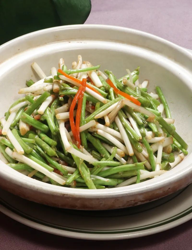 创意:江南地区特有的两种野菜一同入锅,先炒后焗,香气独特,口感清新。
