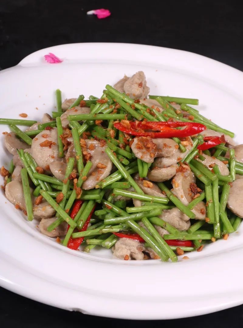 亮点:芦蒿从春季持续供应到秋季,冬季则有保鲜品出售。此菜先将鸡腰入白卤水浸熟,然后与拉油的芦蒿爆炒,最后撒金蒜蓉,芦蒿清脆,带有水草的芳香,鸡腰软嫩咸鲜,微带蒜香。