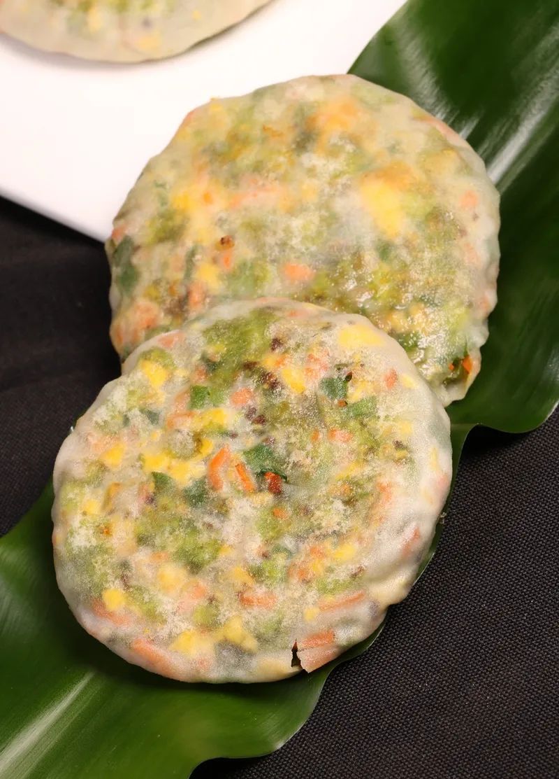 选用今年第一茬槐花,掺入鸡蛋、面粉煎至金黄,再用模具扣成圆溜溜的小饼,截面露出粒粒槐花,卖相更加精致,嵌入的一颗生蚝则提升了菜品档次。制作流程:
