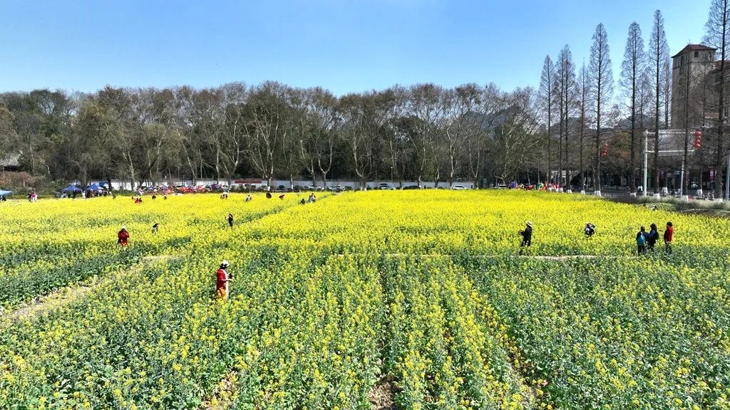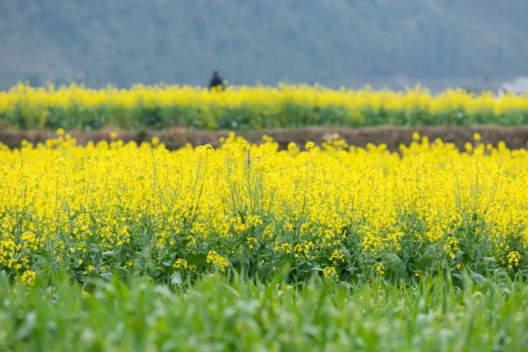 香气四溢的油菜花,不仅让蜜蜂忙碌起来,更吸引了成群结伴的游人。他们漫步在花田里,拍照打卡,笑颜如花,尽享春日好时光。