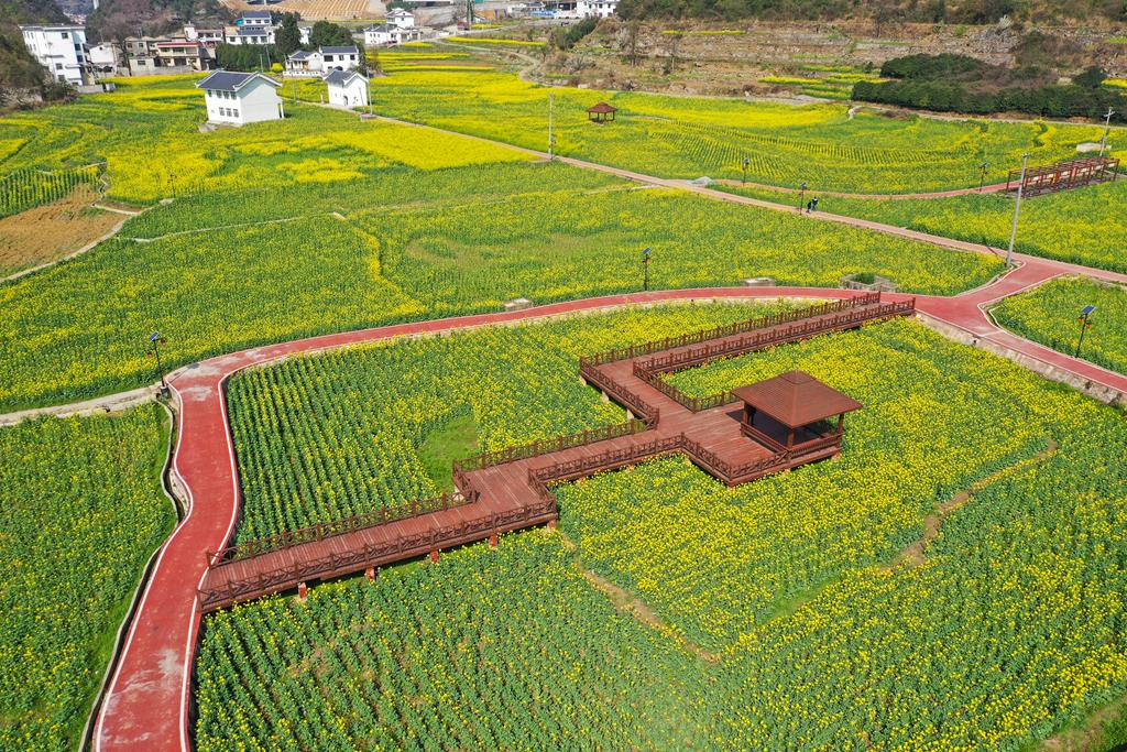 通过规划引导发展赏花经济,目前,修文县油菜花种植面积已达到5万亩以上,此外,大木村、高潮村、折溪村、蜈蚣桥村等地都有赏花点,除了油菜花,游客还可赏桃花、梨花,各村形成了差异化的赏花资源,吸引源源不断的游客。