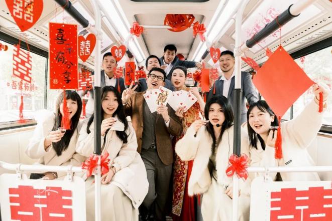 今年1月,29岁的熊颖和30岁的彭哲龚在武汉来了一次新颖的公车接亲,在某社交平台上收到了很多关注。