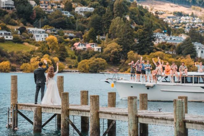 在拍摄皇后镇的一个湖的场景的时候,他们在一个码头,后面有辆游艇,上面有很多年轻人在开party。当时船上有人发现他们在拍婚纱照,便特意把船调转一个方向,从他们面前开过,船上的那些年轻人都在那里为他们欢呼。