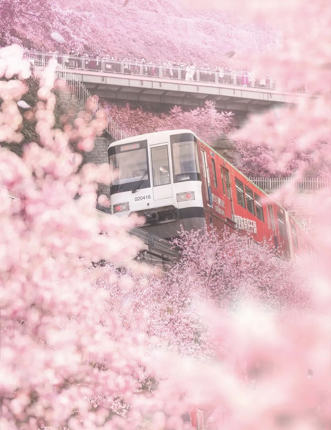 2️⃣不输日本的樱花“小火车”:重庆轻轨、北京S2