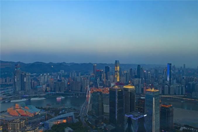 无论是重庆地标“朝天门码头”或是世界最长的拱桥“朝天门长江大桥”,还是长江和嘉陵江两江交汇的璀璨盛景,均可一览无余。酒店由HBA操刀设计,简单的色彩搭配在“城市之巅”的映衬下完美诠释了Less is More的意境。