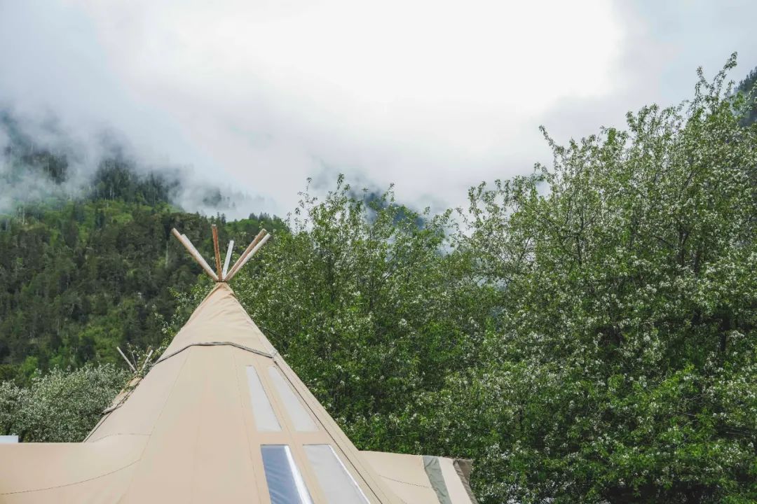 营地拥有30顶帐篷,给人最大感受就是雪山近在咫尺。每间房的露台都直面雪山美景,午后喝着咖啡看马儿从身旁缓步而过,或者是对着神山冥想,这应该就是野奢Glamping的用意。