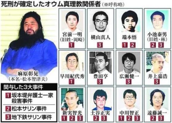 1995年5月,日本政府撤销了“奥姆真理教”的宗教法人资格。东京地方法院于1996年对麻原彰晃开始审判,与“奥姆真理教”相关的一系列刑事案件于2018年1月全部审判完结,共有190名与“奥姆真理教”相关的涉案人员被判刑。包括麻原彰晃在内的13名骨干成员于2018年7月被分两批执行死刑。