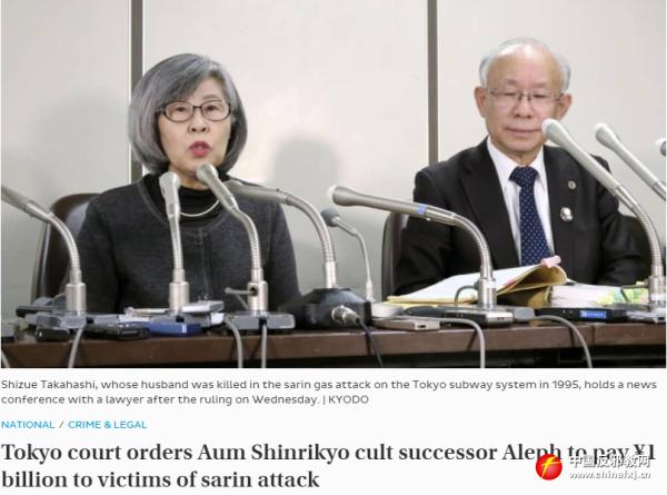 2019年4月10日,东京地方法院宣判,要求“奥姆真理教”邪教衍生组织“阿莱夫”为1995年东京地铁沙林毒气事件的受害者及其家属支付10.2亿日元(约人民币6100万元)赔偿金。
