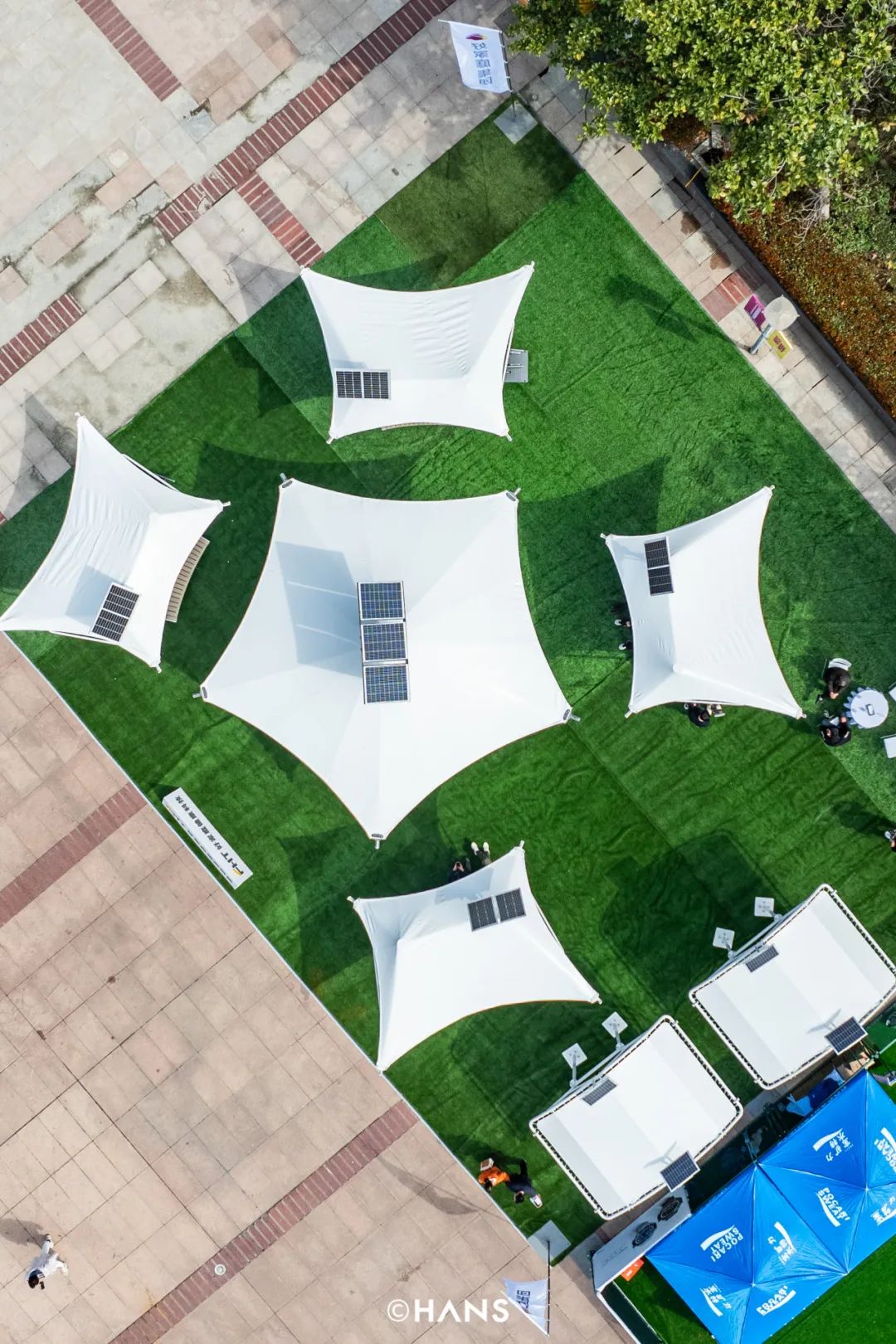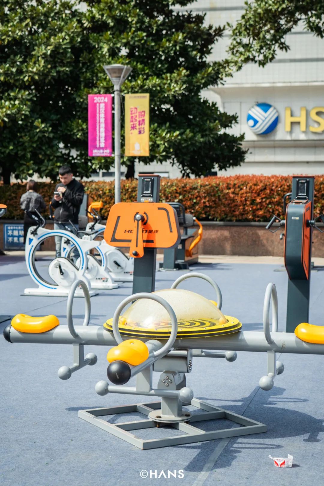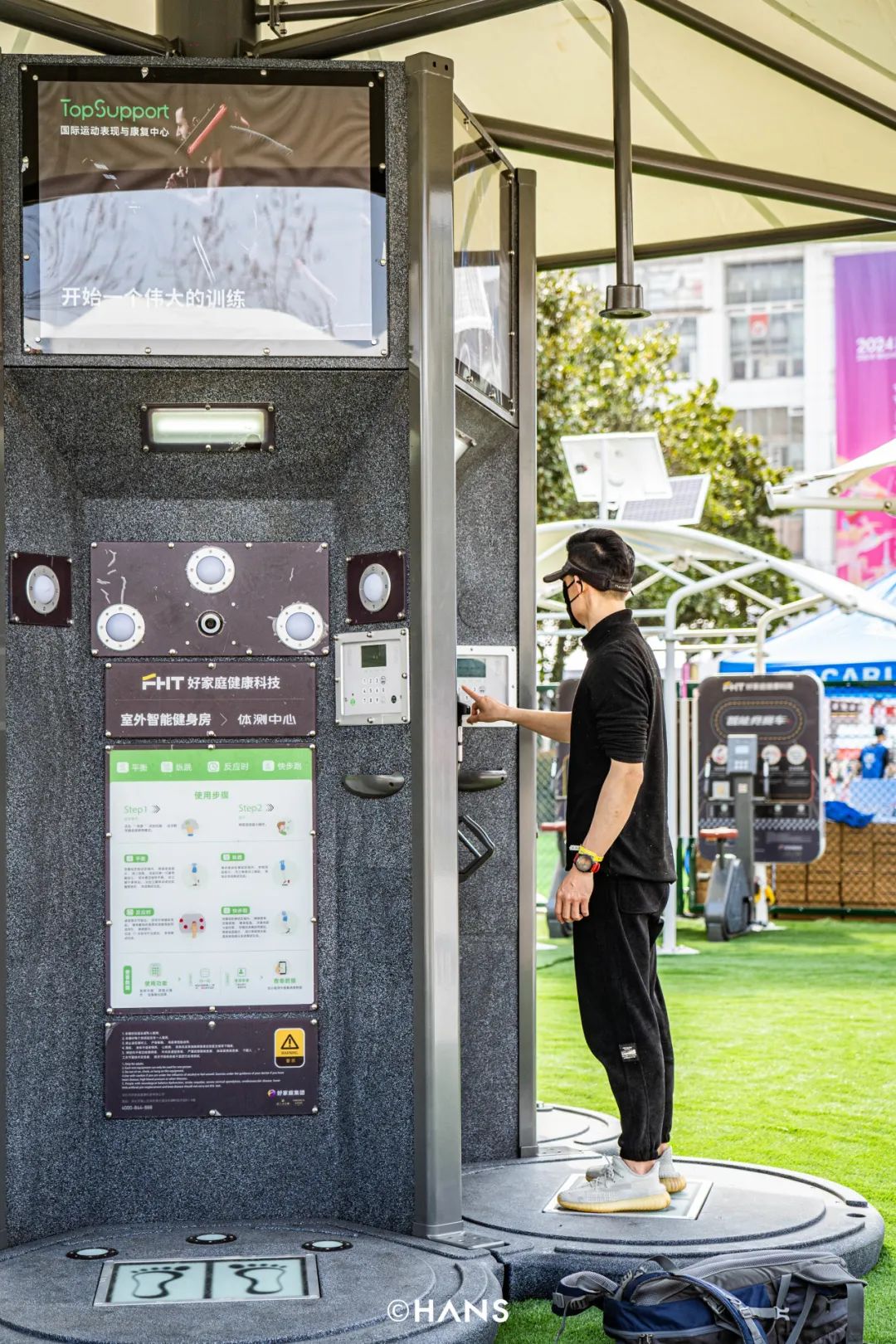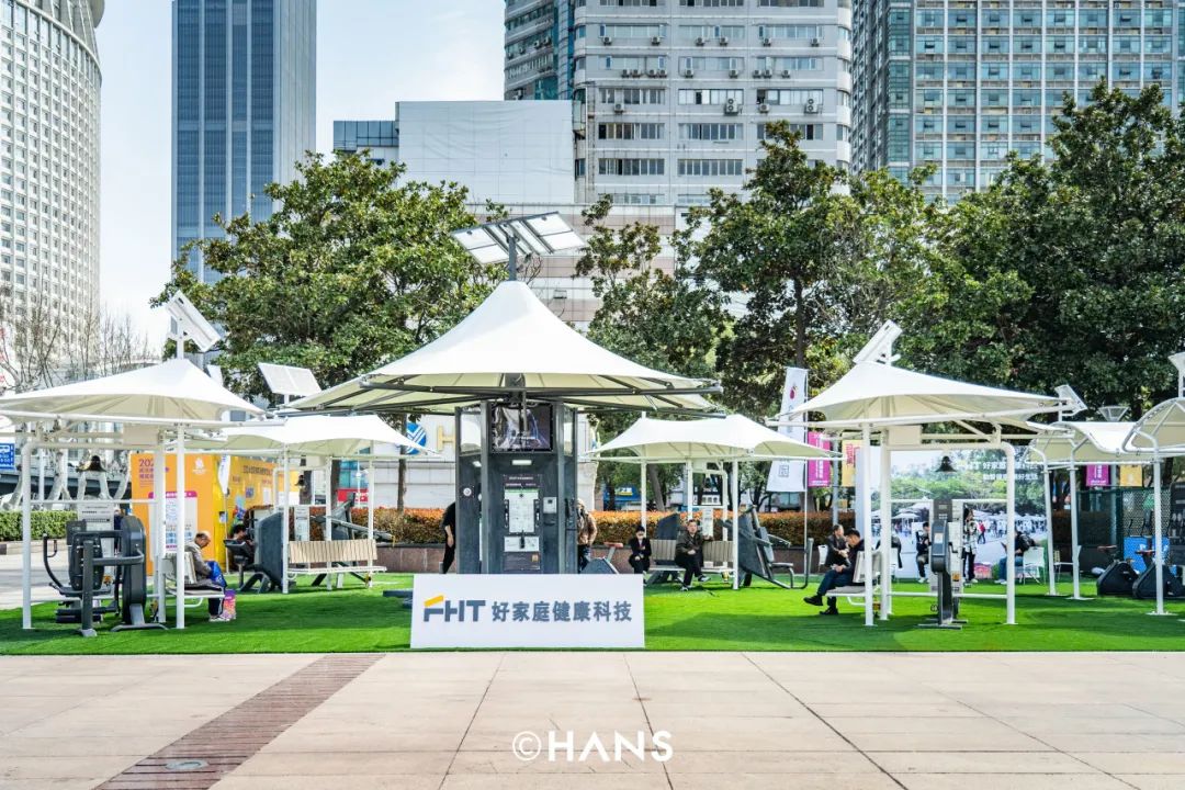 隔壁好家庭(展位号:W2)的室外智能健身房,扫码就能制定健身计划,几分钟就能做完一次体测,在上肢肩关节双功能训练器,你能锻炼三角肌和肱二头肌,轻松省一笔私教费。航拍时意外发现,整个好家庭展台竟然是靠太阳能供电,这很新能源。