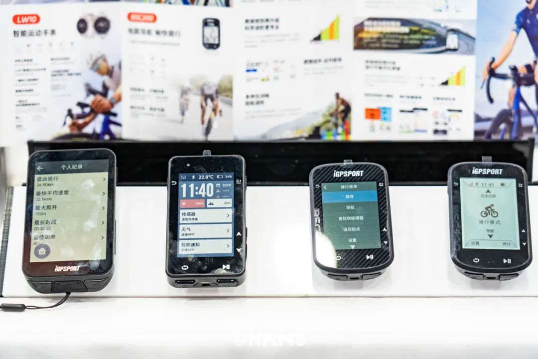 在健利达隔壁,你可以看到齐物科技(展位号:D6)带来的骑行设备展示。想必骑行发烧友对iGPSPORT迹驰这个品牌不会陌生。戴上他们家的“显眼包”码表,体验一次深度体验骑行的快感,在千瓦大腿中获得急速行驶的巅峰体验。