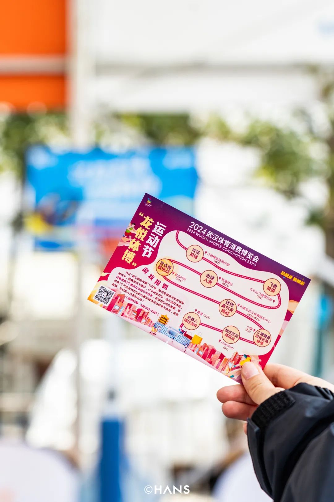 不仅如此,现场还能领取地图进行游戏打卡盖戳。本届体博会前三天,在武汉国际会展中心现场,领取“龙悦体博”地图卡,参与各种游戏挑战。本人直接奔向自由时刻帅气投篮,五次机会投中了俩,发扬一点武体精神。通关完成即可获得相应DP点对应盖章,完成全部DP点打卡任务凭地图卡到媒体活动处参与一次抽奖,根据抽奖结果领取奖品~