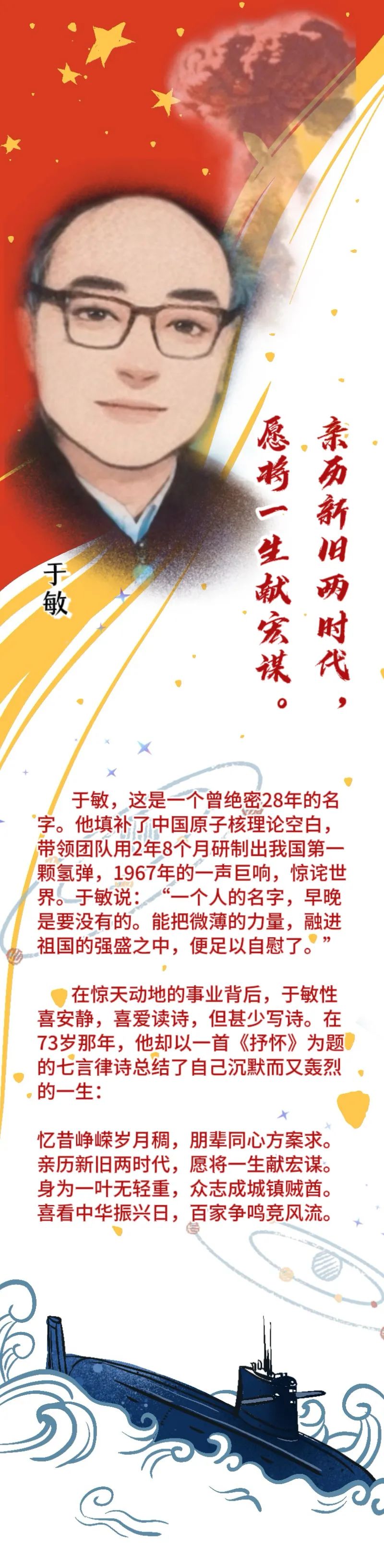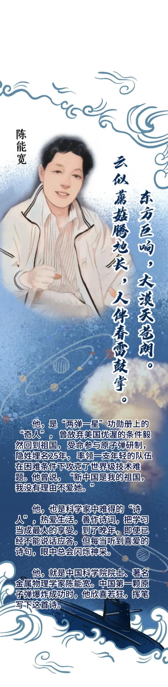 作为推我国第一颗原子弹到塔架下的4人之一,看到爆炸成功的蘑菇云升起时,我的心里就有了这首诗,但因为保密不敢落到纸上,50年后,才终于将它出版。
