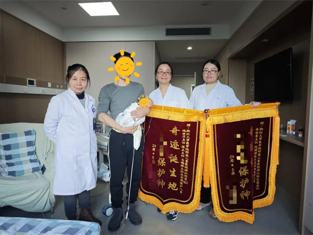 临走前星星爸妈特地为医护人员送来了两面锦旗,上面闪着五个大字“奇迹诞生地”。