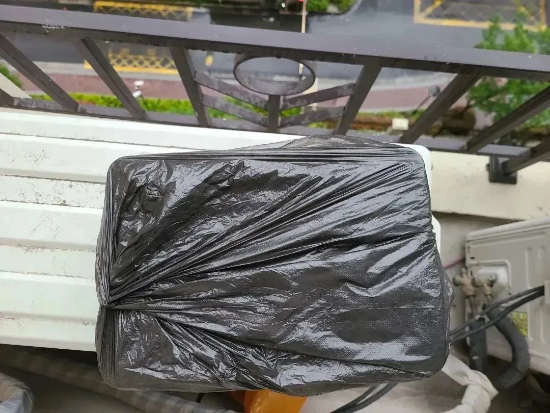 然后就是用黑色垃圾袋里三层外三层裹住那个小盒。