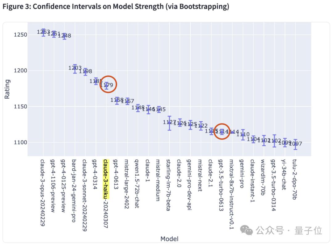 连小杯Haiku也跻身第二梯队,超过了GPT-4-0613这个型号,把GPT-3.5-turbo远远甩在身后。