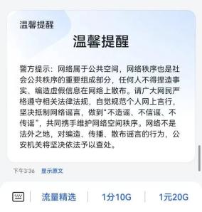 对接运营商通过短信送平安本周,发动全市网安部门主动对接电信、移动、联通三大运营商,以短信方式为用户推送打击整治网络谣言宣传短信,提醒广大用户自觉抵制网络谣言,共同营造文明、绿色网络环境。截至目前共推送用户500余万条。