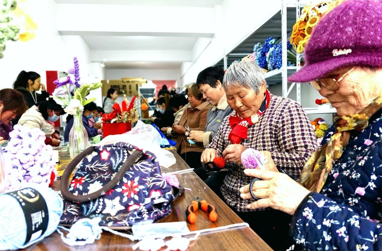 一根小小的银色钩针,几团色彩鲜艳的毛线,在她们的手中编织出一个绚丽多彩的世界。双沟镇官路集中居住区园西村的“妇女微家”工作室内座无虚席,在该村27岁村民王梦碟的带领下,大家手中的团线和钩针翻飞起舞,秒变成花。