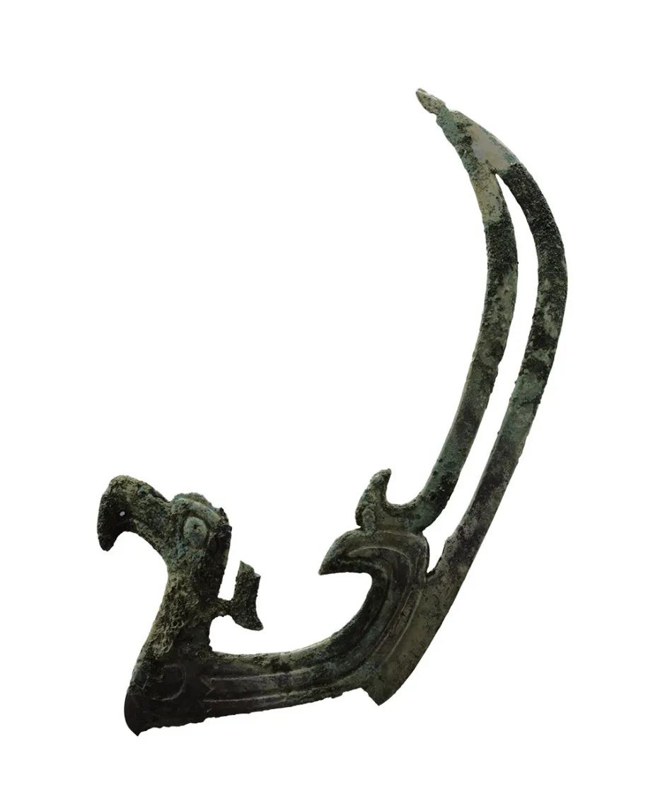 此外,在三星堆遗址还出土有两类镶嵌绿松石青铜牌饰,一类是镂空的几何纹装饰,与天山北路青铜牌饰也很相似。一类是具有动物纹因素的装饰,与二里头文化和齐家文化有关。因此,三星堆青铜牌饰是中原地区和西北地区两种文化融合创新的结果。