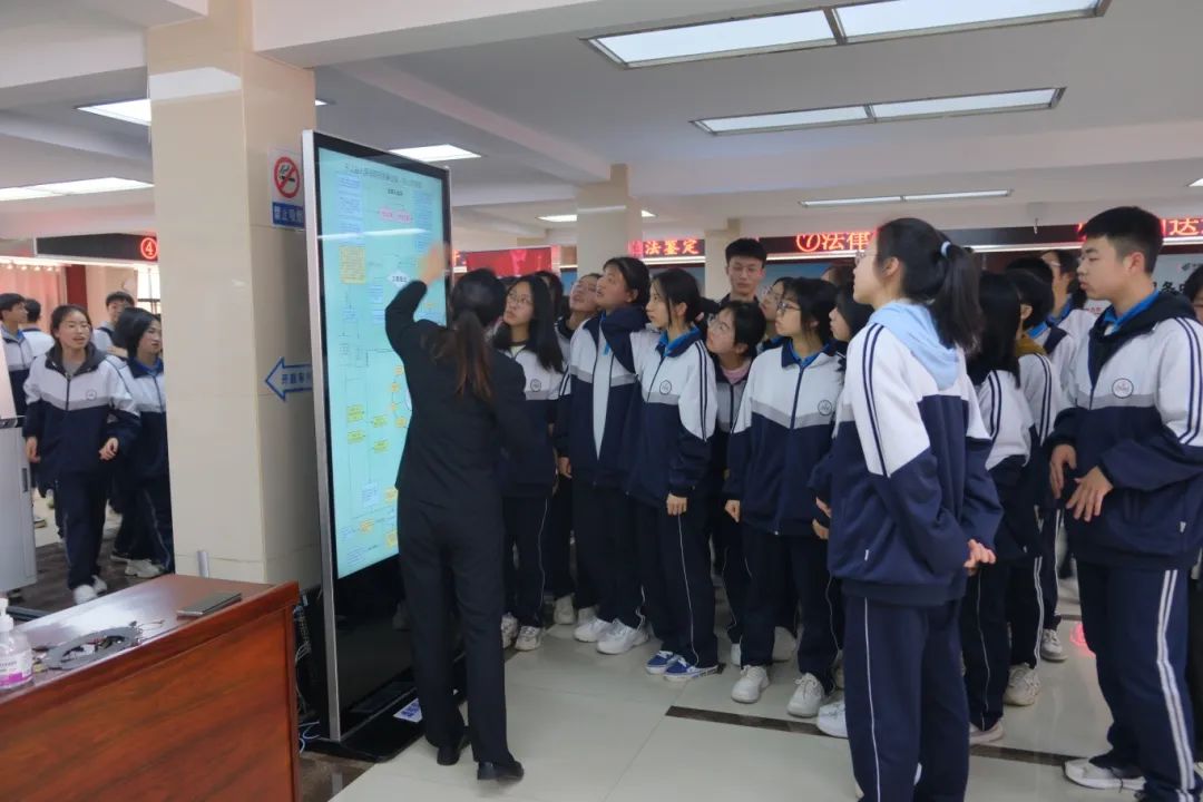 在立案庭讲解员的引导下,师生们先后参观了诉讼服务中心、信访接待大厅。了解立案流程、智能化立案等特色诉讼服务,邀请同学们亲身体验诉讼服务区域各项便民、利民措施和服务终端设备,使师生们对法院立案流程、诉讼服务中心的职能有了全面的了解。在参观了解中,同学们逐渐融入到法院,也渐渐变得活泼起来。