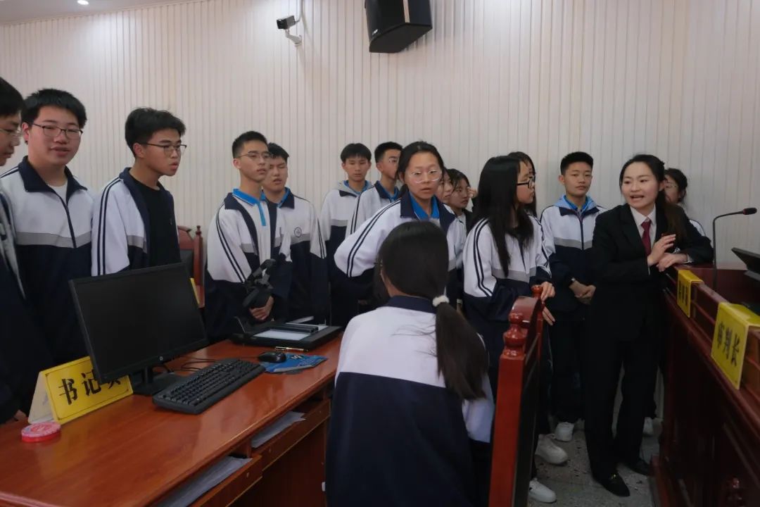 看!同学们在旁听一起故意伤害案,随着一声庄严的法槌声响起,一场别开生面的法治教育实践课开课了。“面对面”沉浸式地旁听案件审理的每个环节,近距离地感受法律的庄严和神圣,更加直观地了解刑事案件审理的全过程。03