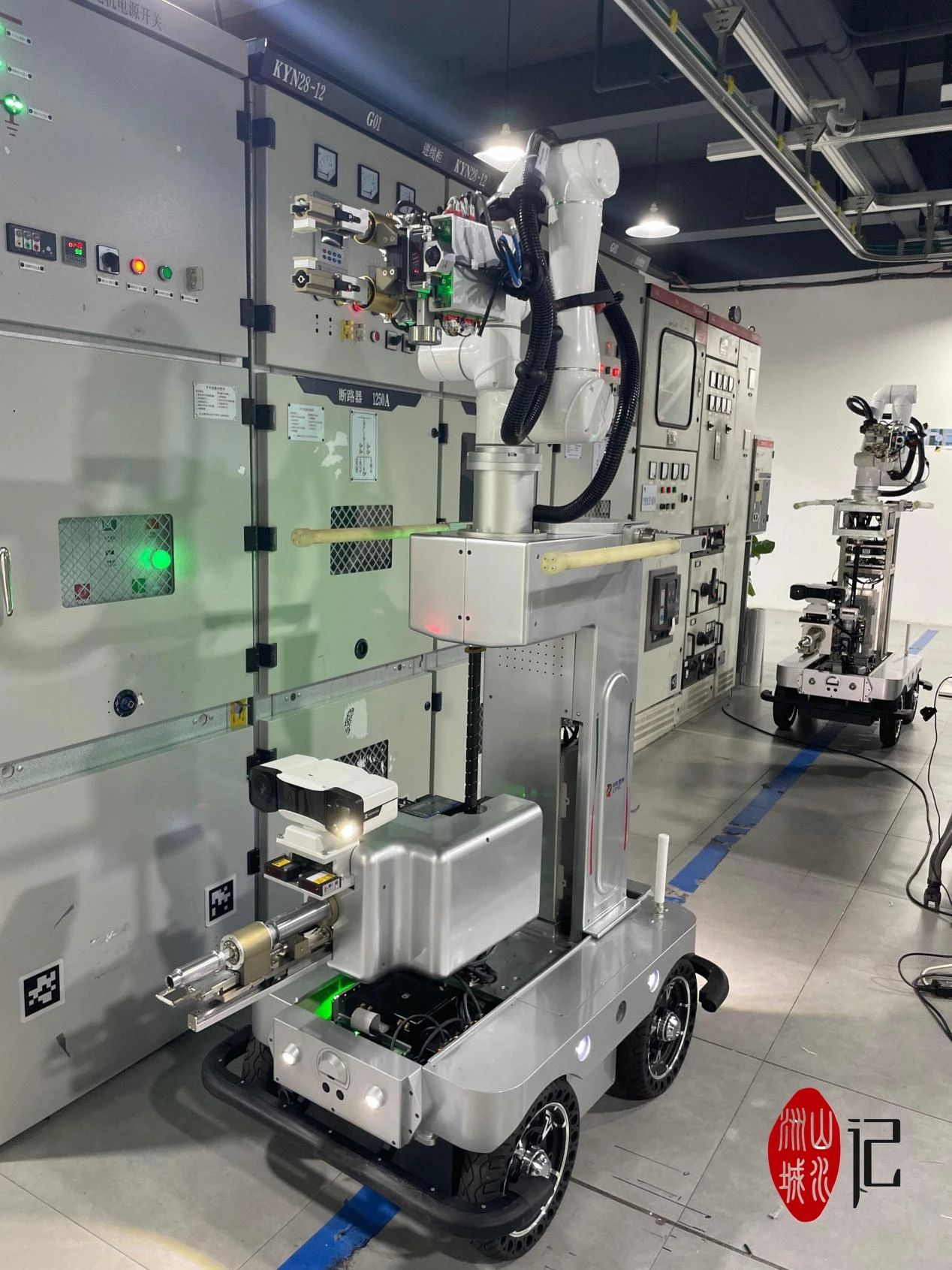 图为昱拓智能研发产品YT-GR900B 高压柜巡操机器人。图片来源于长沙理工大学校友总会。