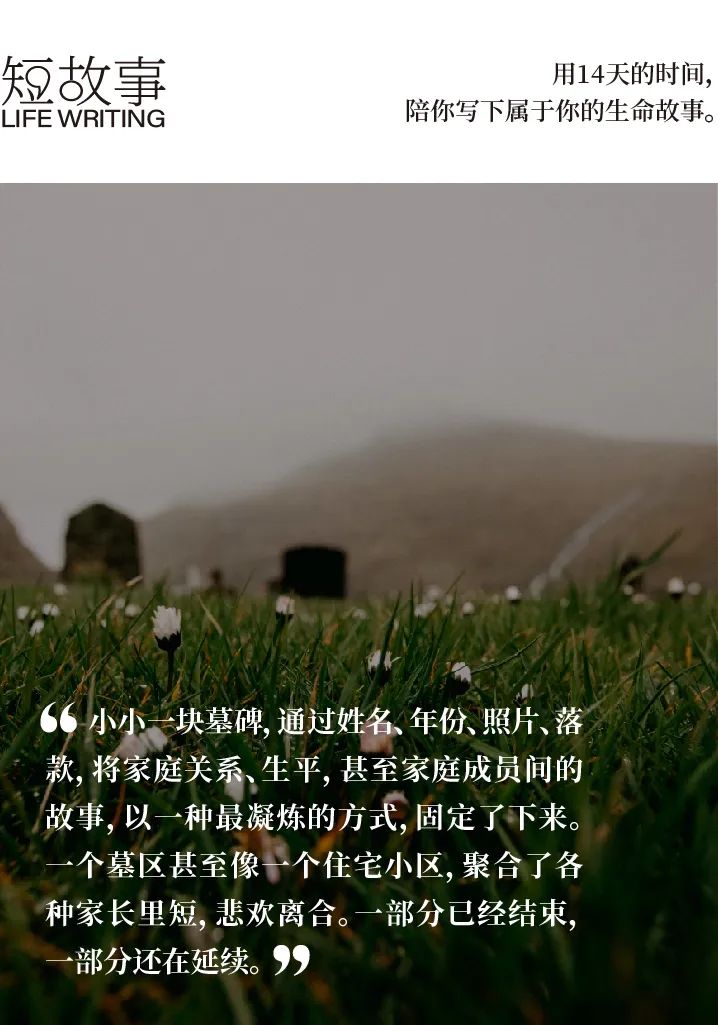 小小一块墓碑,通过姓名、年份、照片、落款,将家庭关系、生平,甚至家庭成员间的故事,以一种最凝炼的方式,固定了下来。一个墓区甚至像一个住宅小区,聚合了各种家长里短,悲欢离合。一部分已经结束,一部分还在延续。