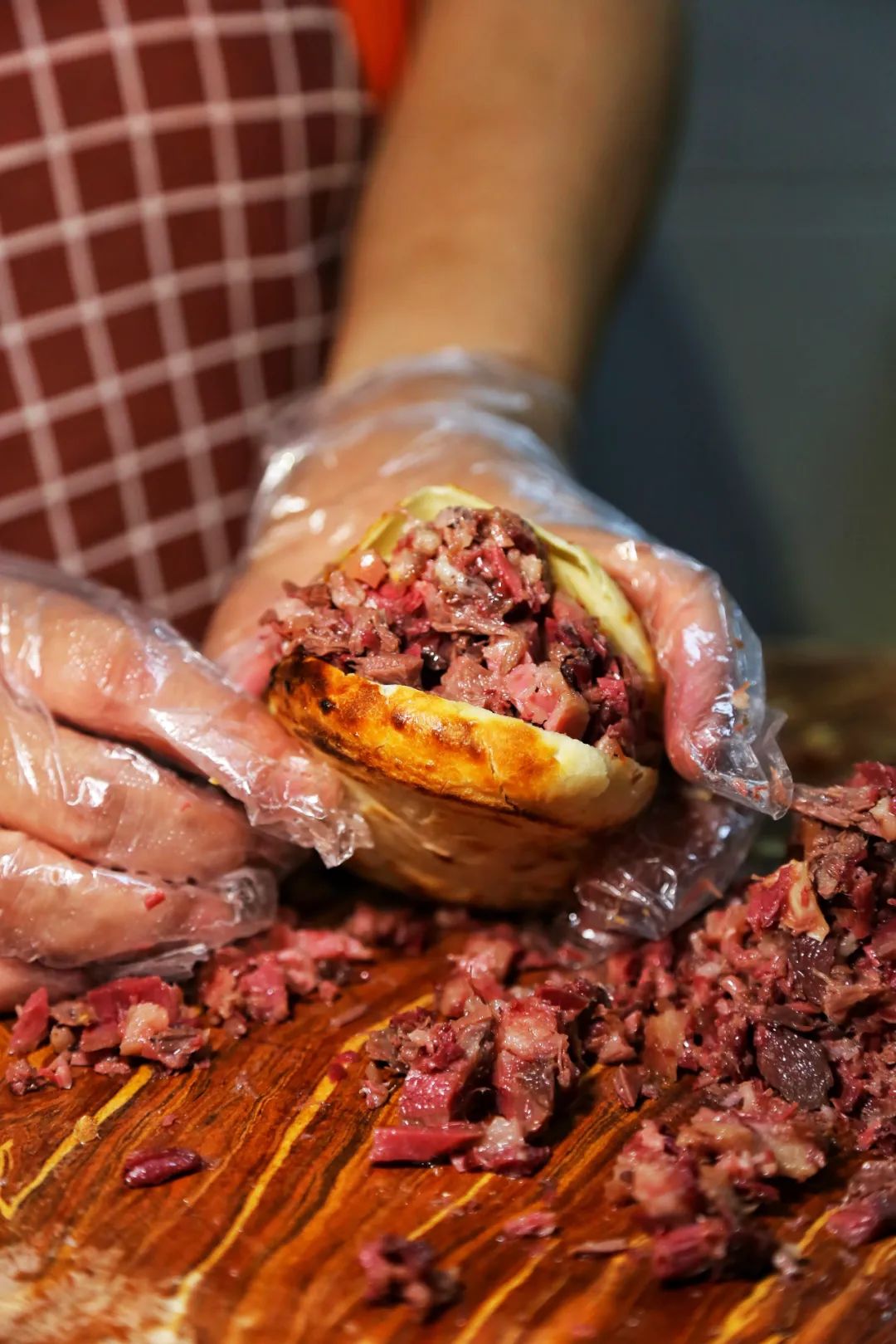 和河北驴火一样,潍坊肉火烧一定要趁热吃!才不辜负它忍受几百度的高温火烤,历练出的“外焦里嫩”。