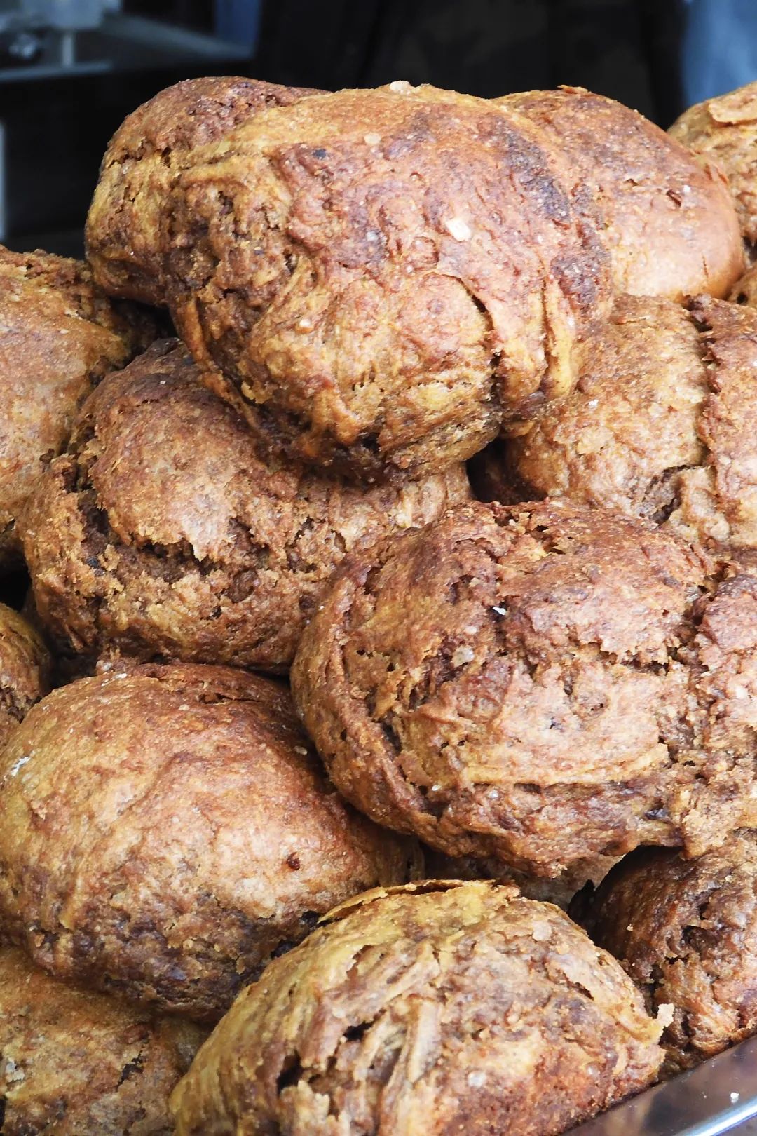 在北京,火烧可以重口味,也可以很甜腻。比如这个长相同样也不起眼的小黑胖子——糖火烧。