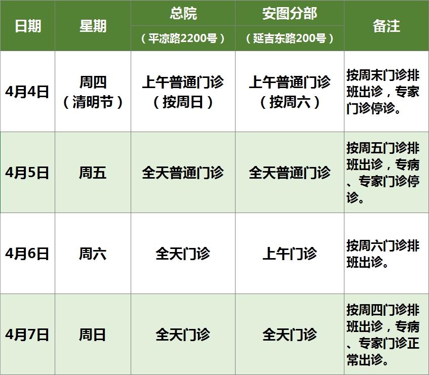 杨浦各医院清明假期门急诊安排来了!请收好→