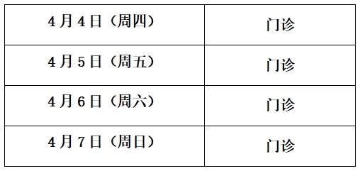 4月4-7日清明节假期杨浦区中心医院门急诊服务安排如下: