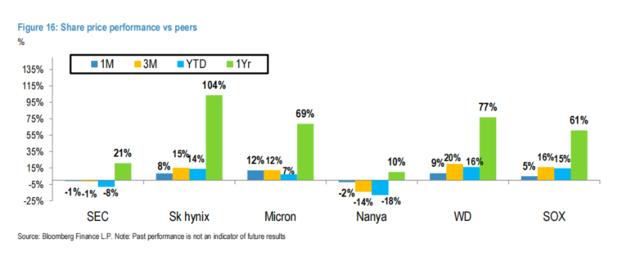 摩根大通表示,HBM执行进展和DRAM利润率与同业之间的差距缩小,是三星电子股价表现超越同业的关键前提。随着预计三星的普通DRAM利润率到年底可能与HBM相当甚至更高,当市场叙事从“AI内存”转向“整体内存周期复苏”时,股票可能会更积极地反应。最新股价走势证明了这一观点,3月20日以来,三星电子股价已累计涨超15%。