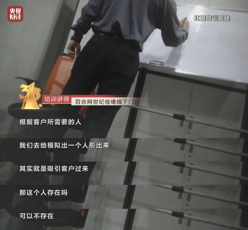 在某婚恋平台的线下分享课上,讲师直接表示,要根据客户所需要的人,模拟一个人形出来,目的是吸引客户过来,“(这个人)可以不存在”。